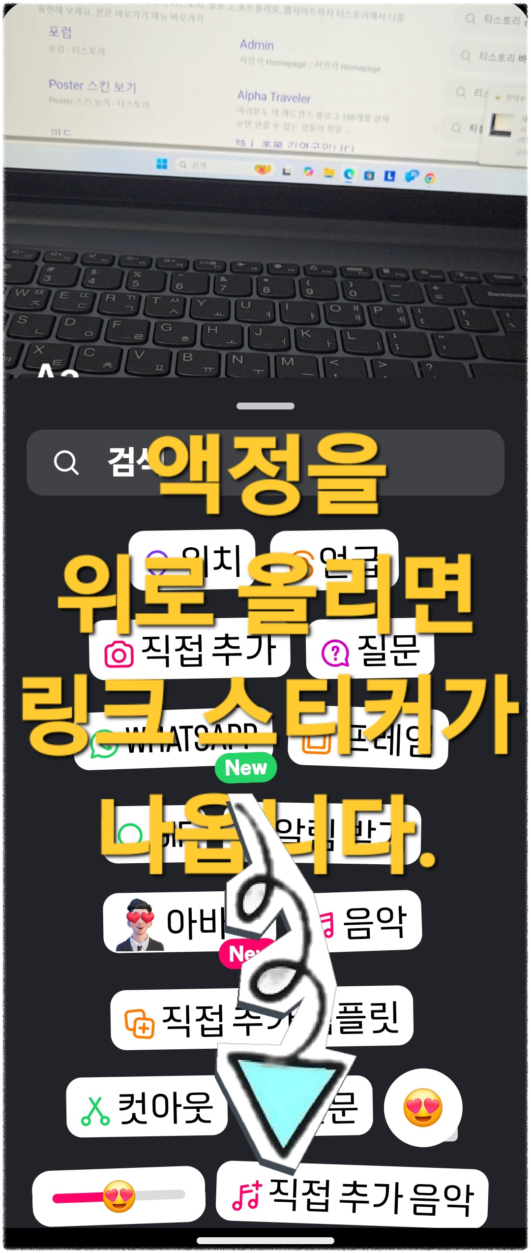 화면을 위로 스와이프 하면 밑에 링크 스티커가 있습니다.
