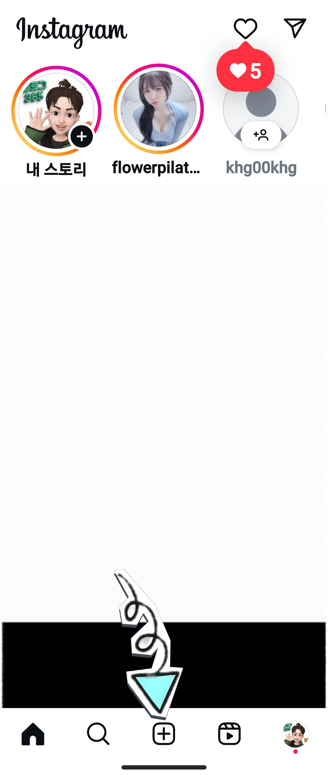 1. 인스타그램 아래에 "+"를 클릭합니다.
