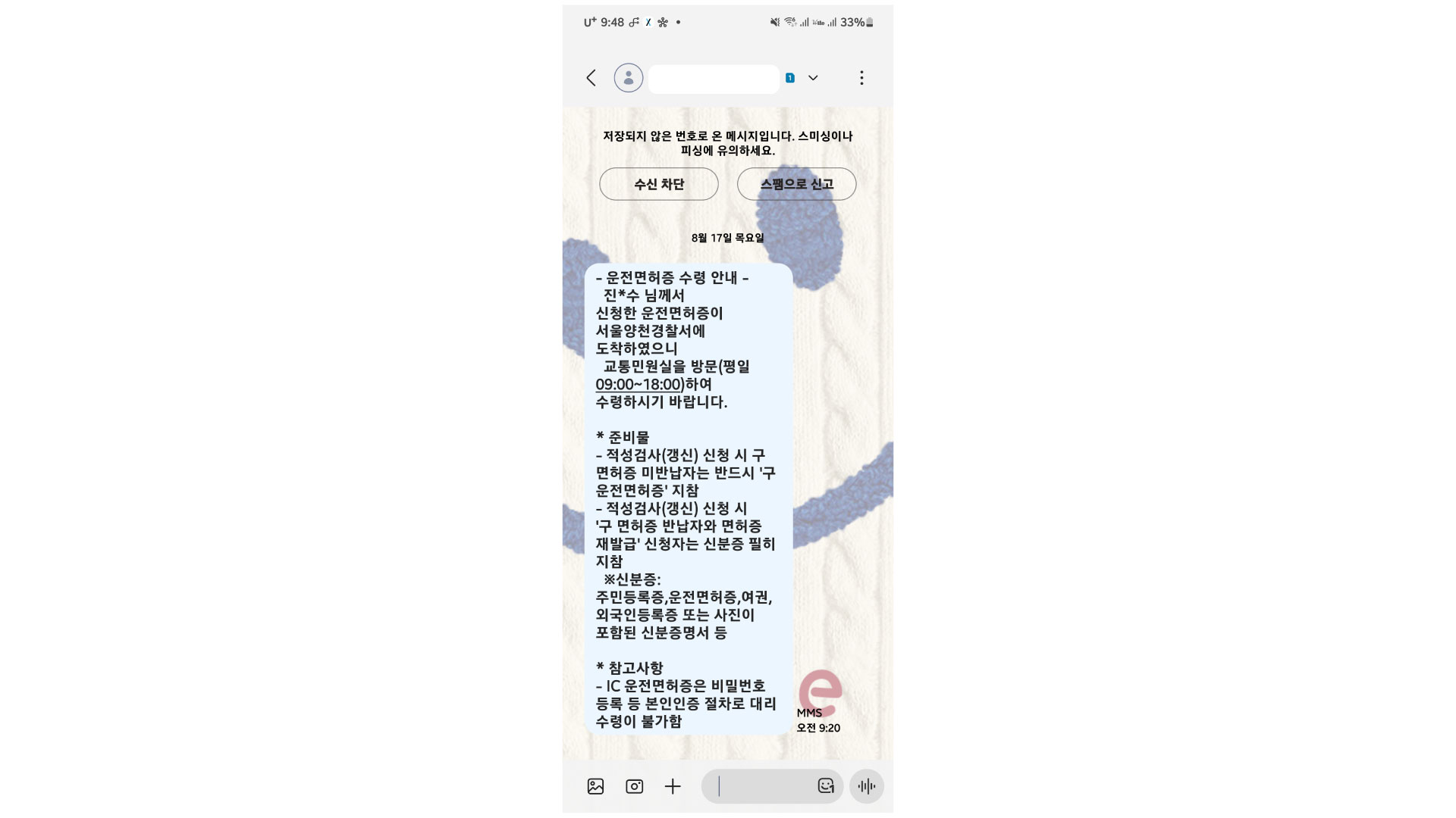 발급이 완료되면 아래와 같이 문자로 알려줍니다.