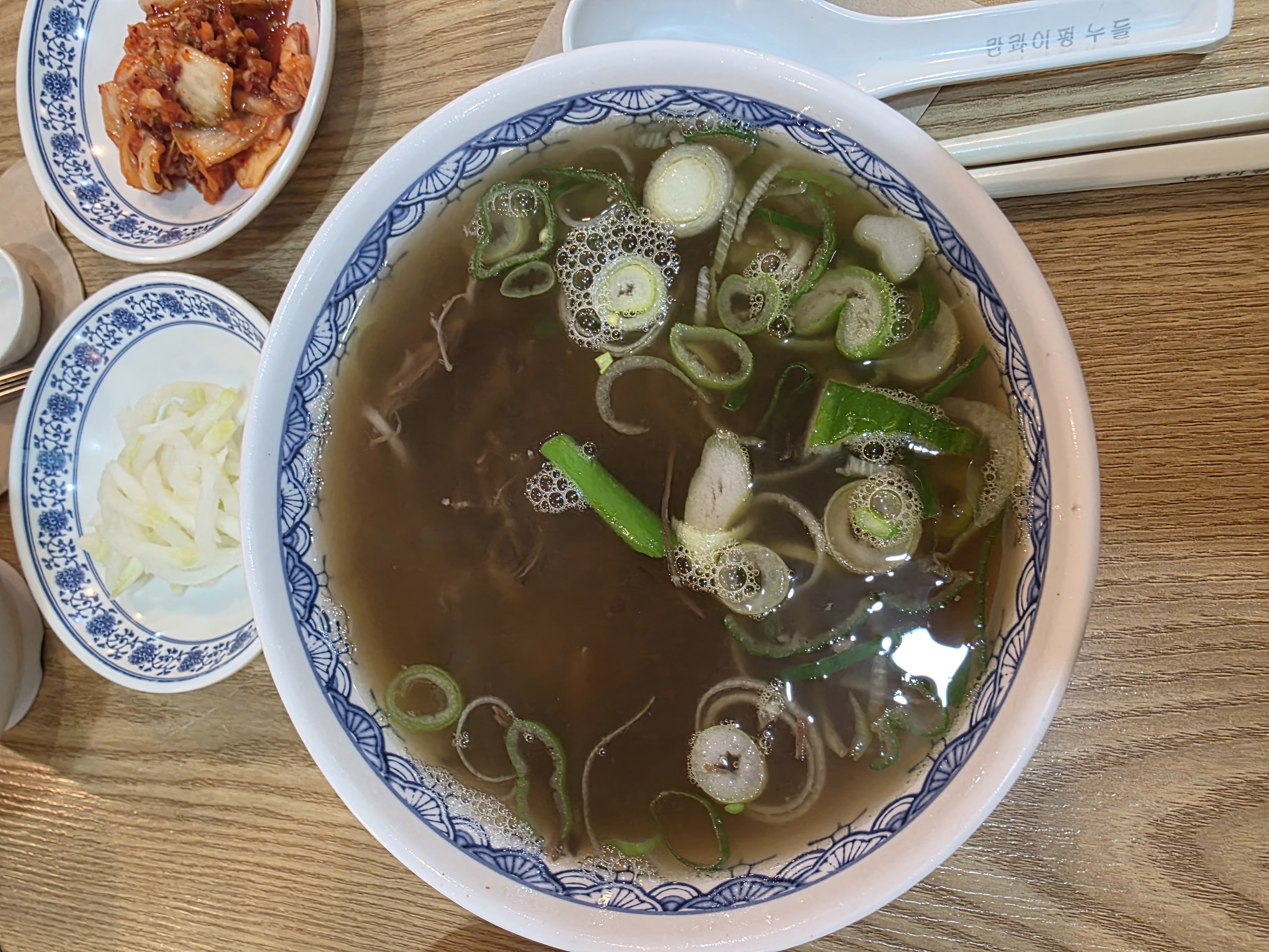먼저 국물 한 숟갈을 떠 마셨는데, 와... 정말 깔끔하면서도 은은하게 느껴지는 향신료의 풍미가 일품이었습니다. 기름지거나 텁텁하지 않고, 오랫동안 정성껏 끓여냈다는 느낌을 받았어요. 속이 편안해지는 개운함이 참 좋았습니다.