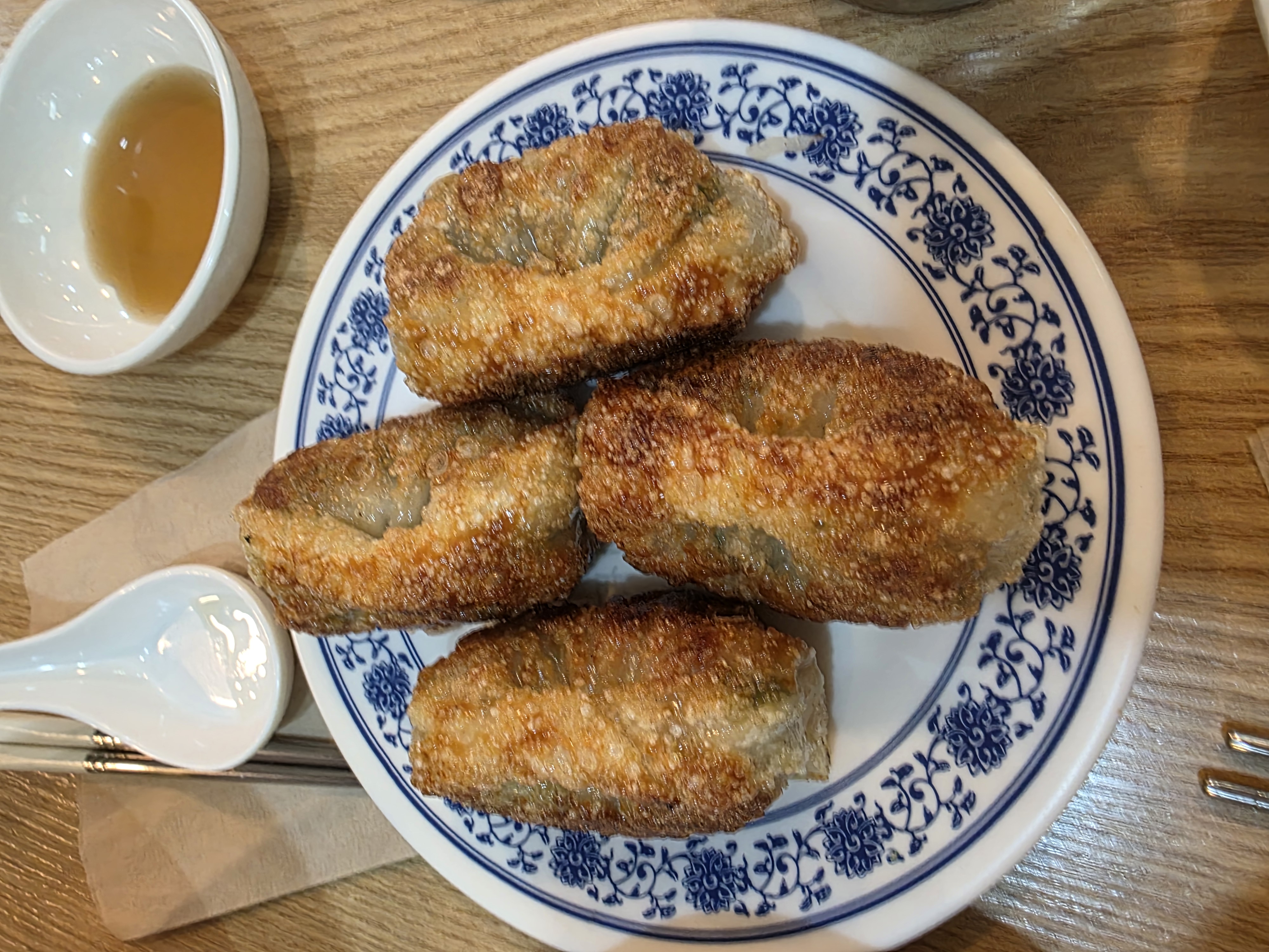 우육탕면과 함께 나온 군만두도 빼놓을 수 없죠! 노릇노릇하게 잘 구워진 밑면이 보기만 해도 군침 돌게 만들었습니다.