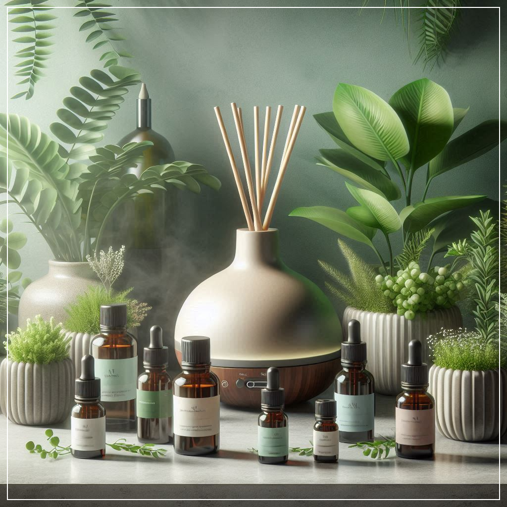 피톤치드가 풍부한 에센셜 오일을 디퓨저에 사용하면 실내에서도 숲 속의 향기를 즐길 수 있습니다.