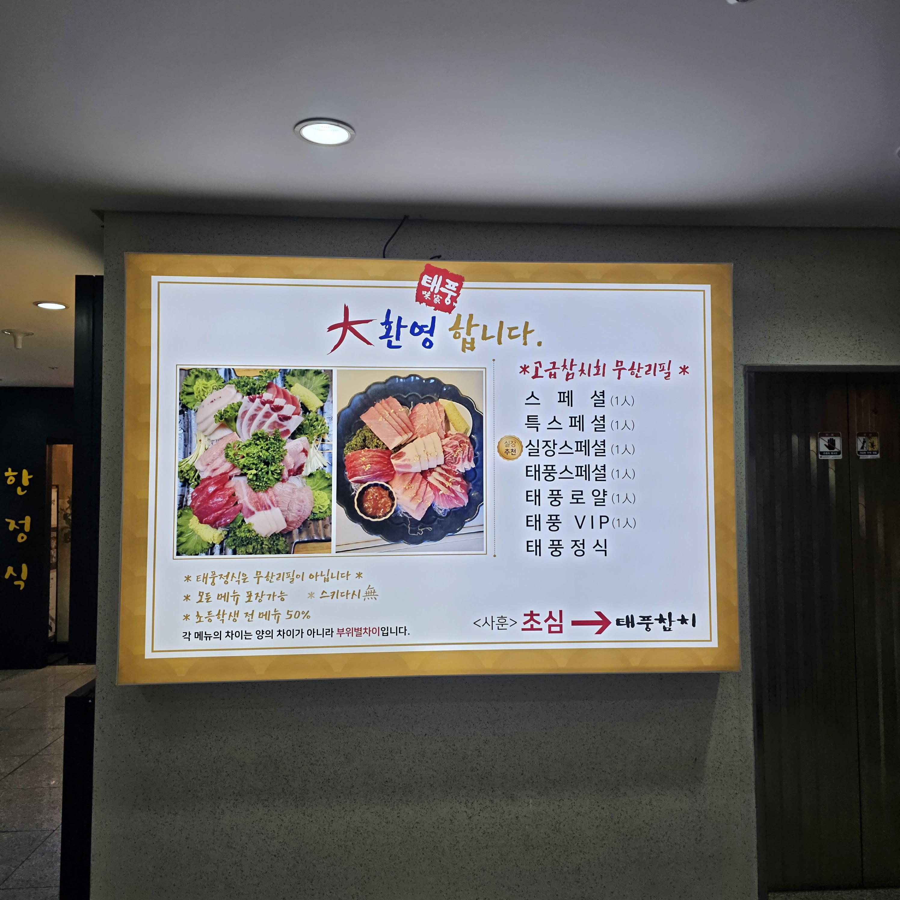 입구에는 태풍참치 메뉴가 크게 붙여
