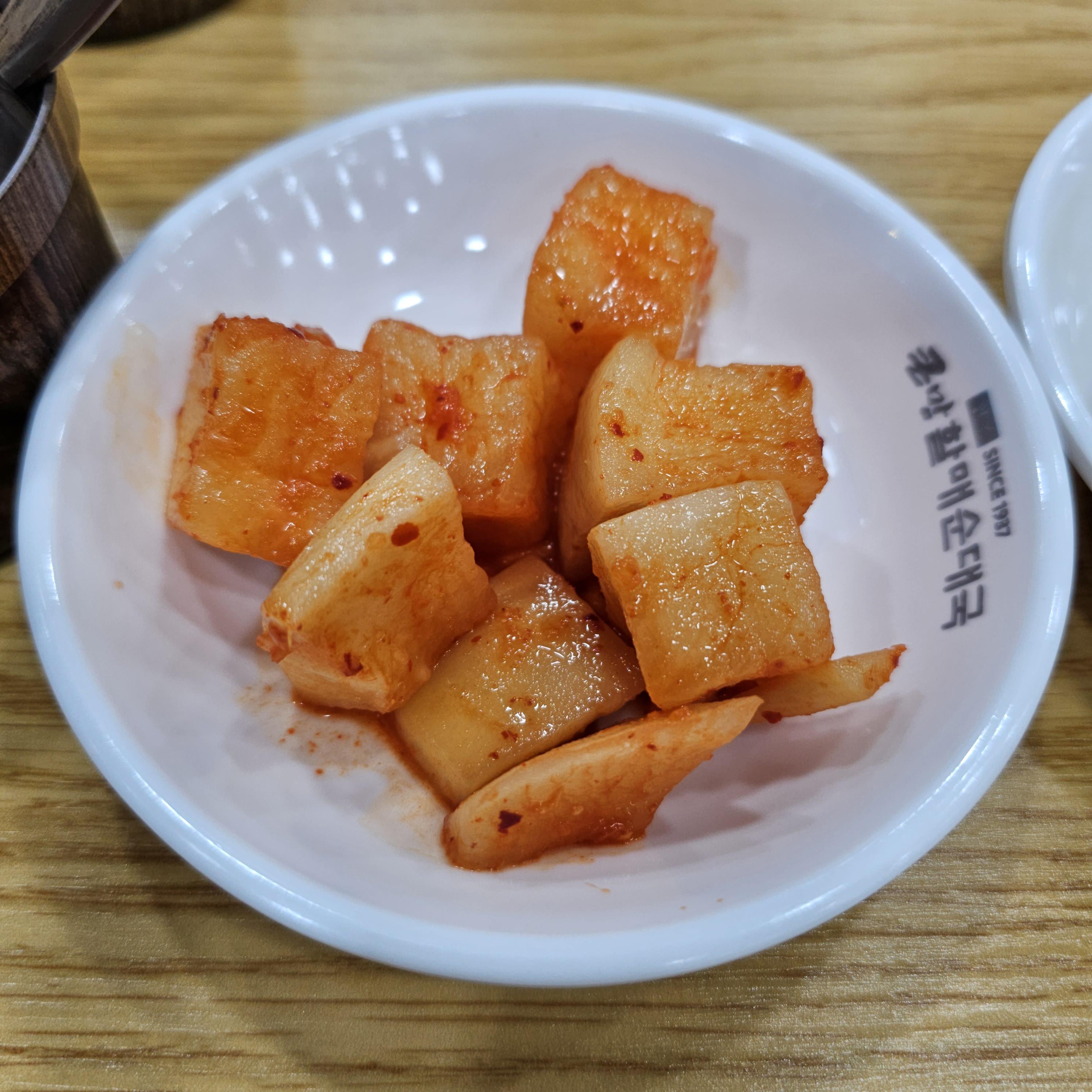 나옵니다. 다른 순댓국집에는 양파와 고추를 장에 찍어 먹게끔 나오는데 여기는 장아찌식으로 나오는 게 특이했습니다.