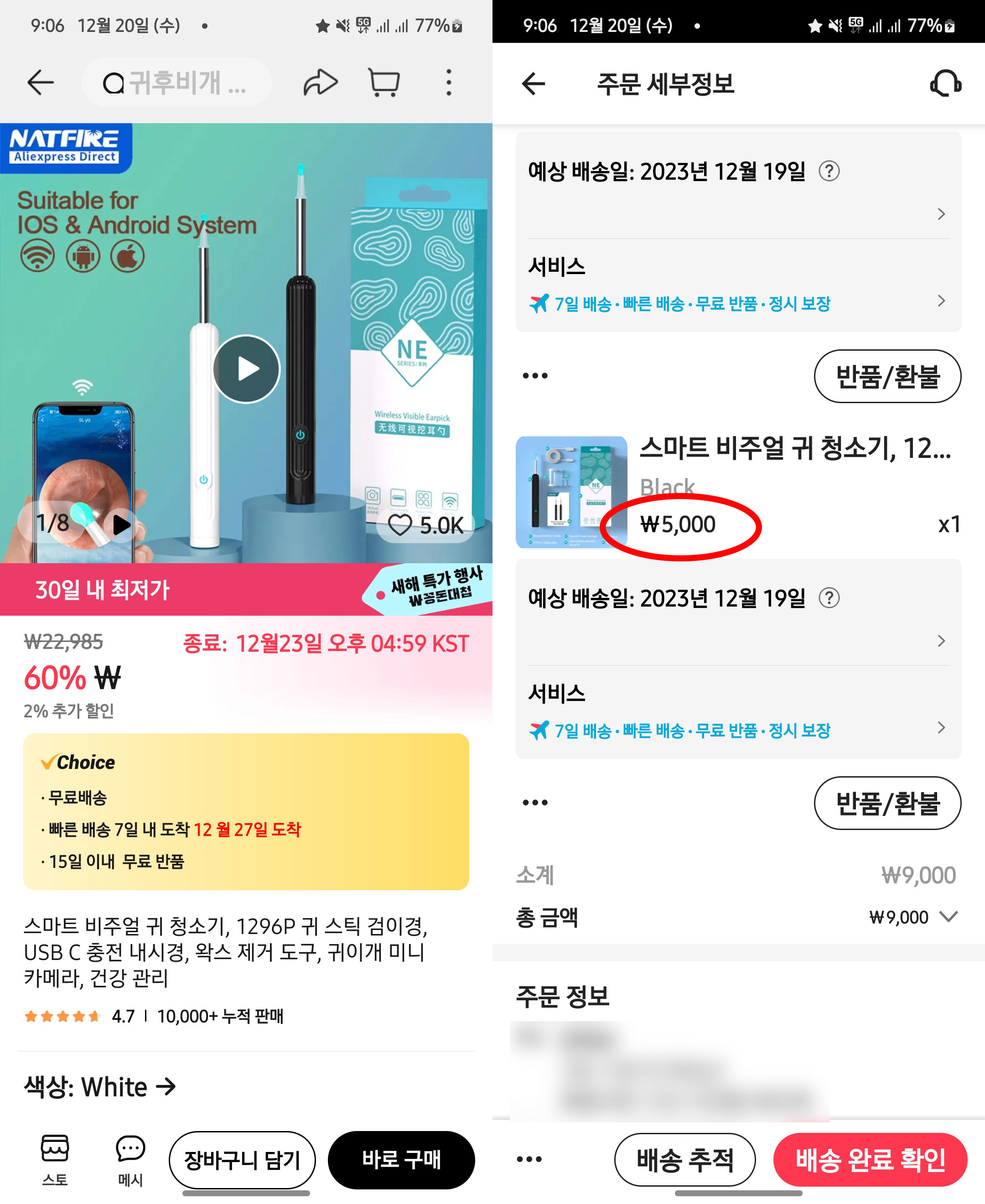 알리에서 5,000원에 스마트 비주얼 귀 청소기를 구매했습니다.