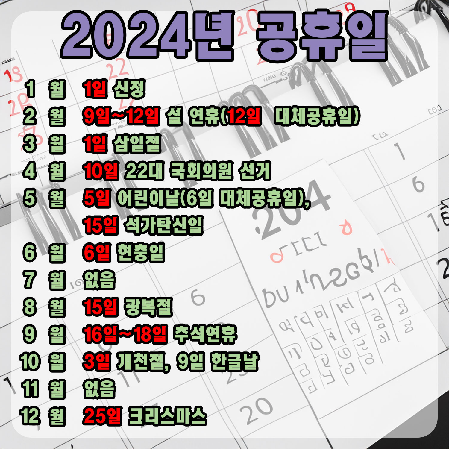 6. 2024년 공휴일