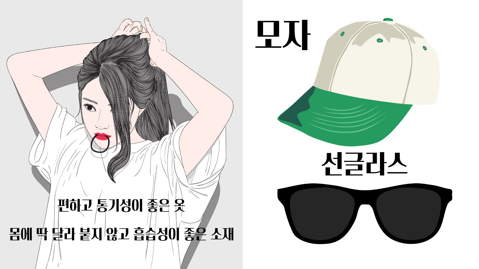 몸에 달라붙지 않고 헐렁하며 흡습성이 좋은 소재가 좋습니다.