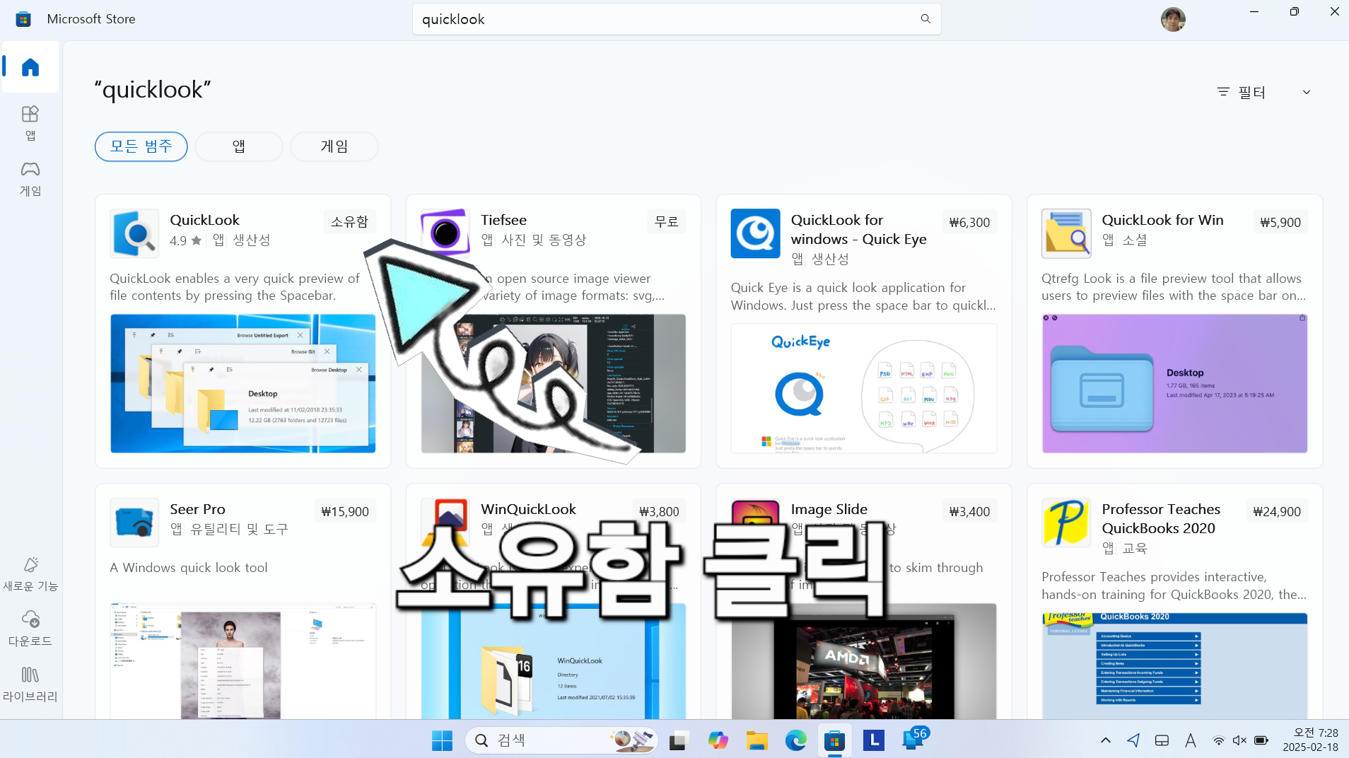 2. Microsoft Store 검색창에 quicklook을 검색합니다.