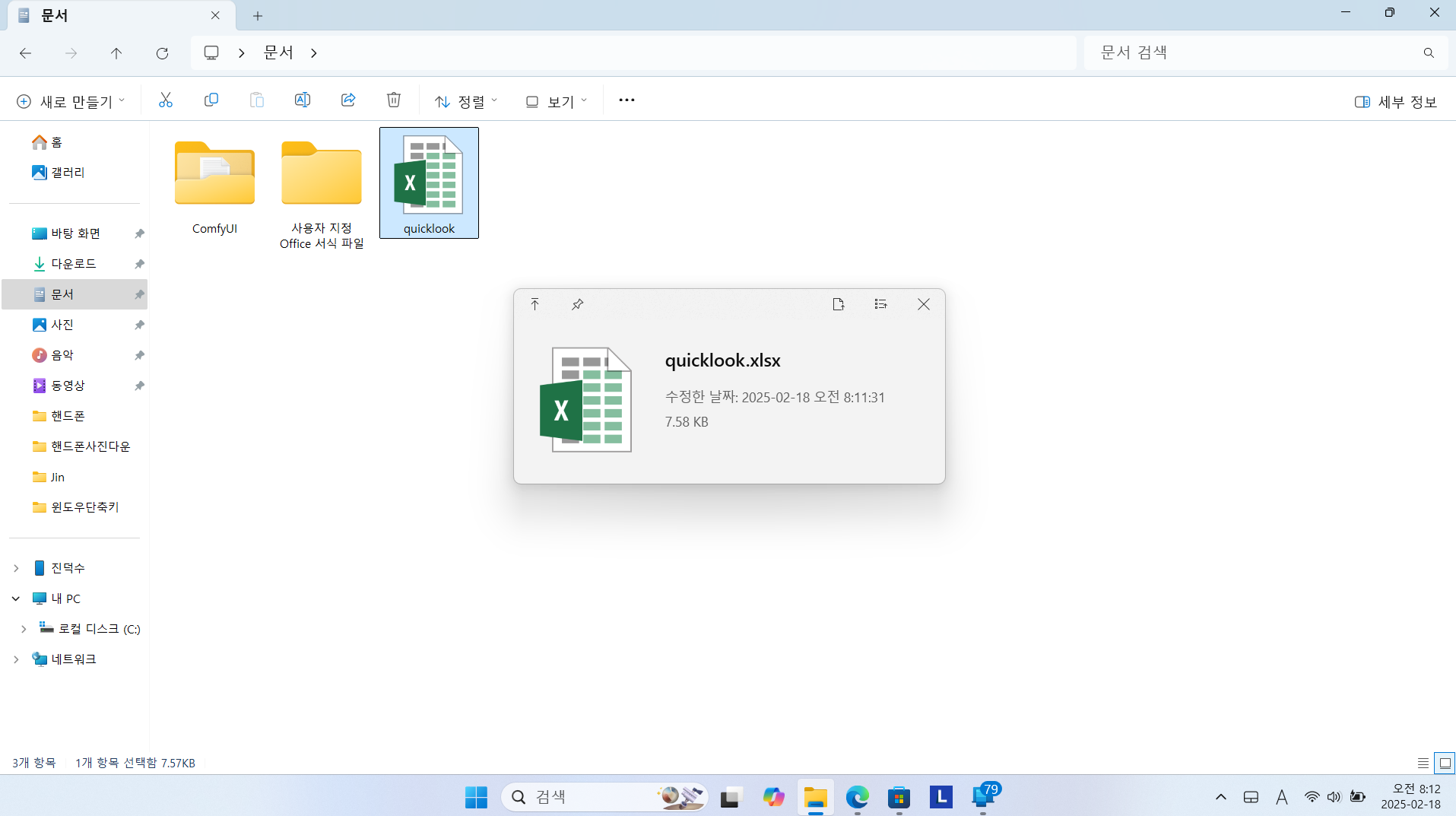 문서는 메모장에 쓴 글만 미리보기를미리 보기를 할 수 있고 엑셀, 워드 등등은 파일에 대한 정보만 미리 보기를 할 수 있습니다.