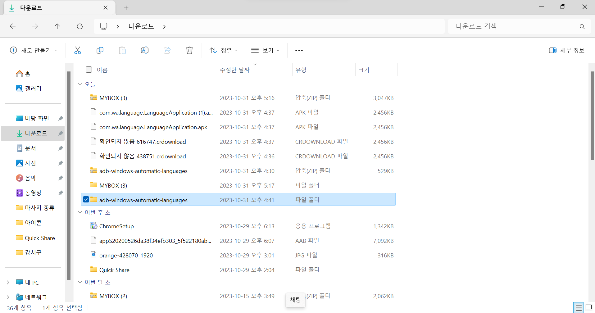 1. 먼저 pc에서 아래 링크로 들어간 후 adb-windows-automatic-languages.zip을 다운로드하세요.