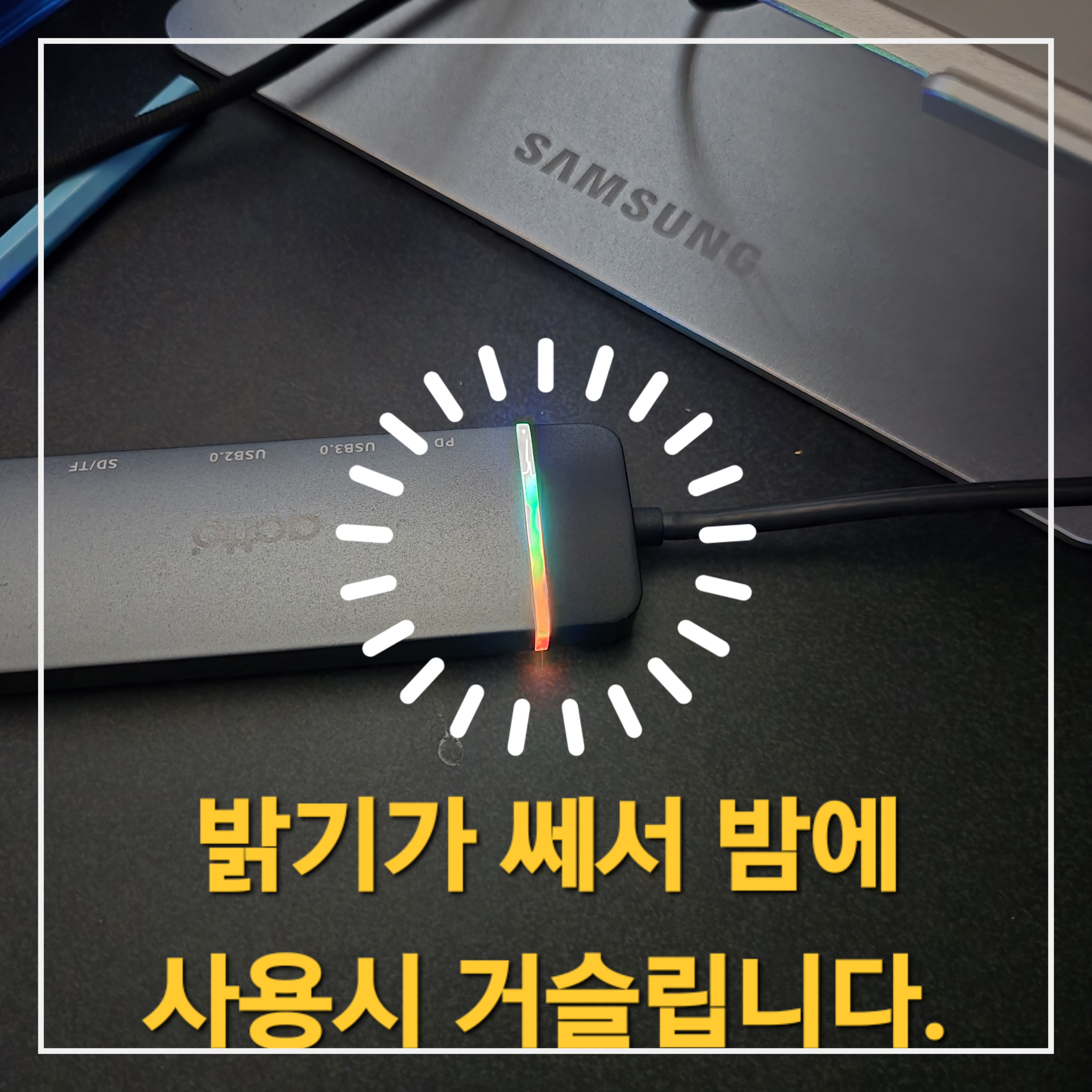 저도 기존에 엑토 6in1C타입 PD 미러링 카드리더 멀티허브 CRH-20를 구매해서 사용하다 led 불이 들어오는 게 밤에 사용 시 불편해서 다른 제품을 구매하게 되었습니다.
